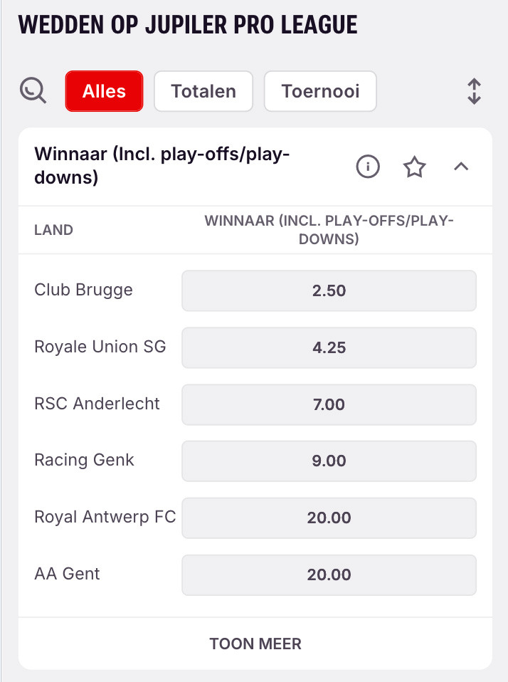 Voetbal is de meest populaire sport voor weddenschappen in België. Wedden op de Jupiler Pro League is er populair, vooral tijdens toppers zoals Club Brugge – Anderlecht.
